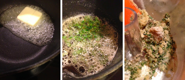 The Butter and and Flour are in place of the base ingredients. Brown the Butter on medium high heat, it won’t take long. Remove from the heat and add the Herbs. Place Browned Butter Herbs and Flour in a small food processor.